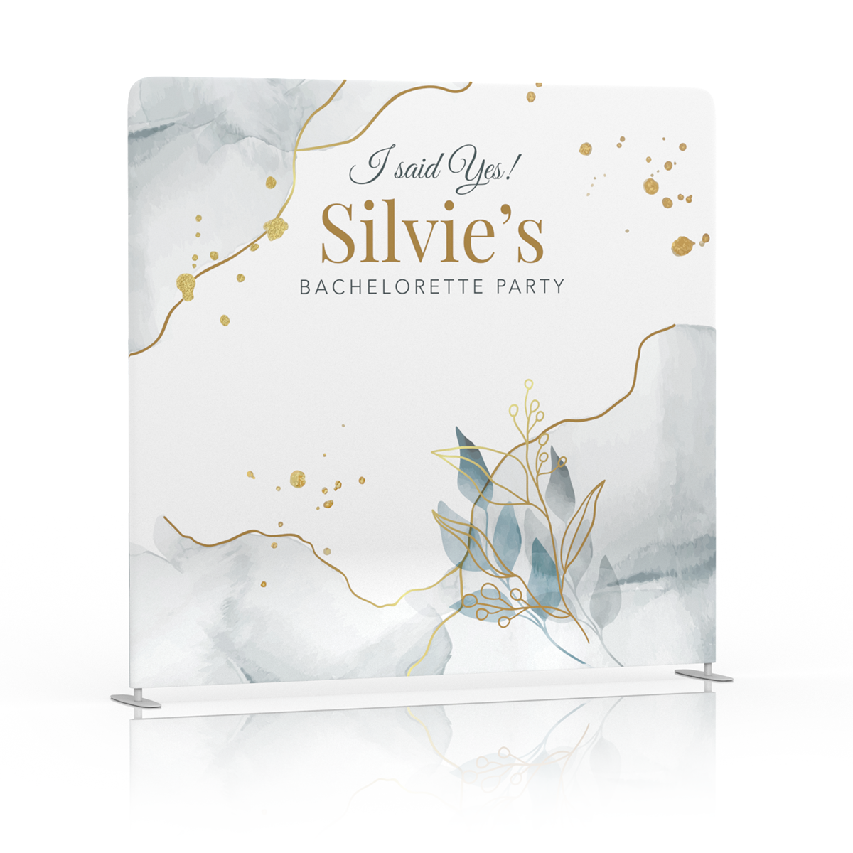 Cheers to love, laughter, and happily ever after! Celebrate your favorite bride-to-be with the ‘Golden Watercolor’ bachelorette party photobooth backdrop. Beautiful and elegant, this Insta-friendly photo wall will make the perfect stagette party background for all your special memories of the bride’s special night.