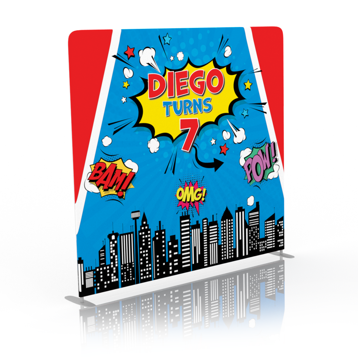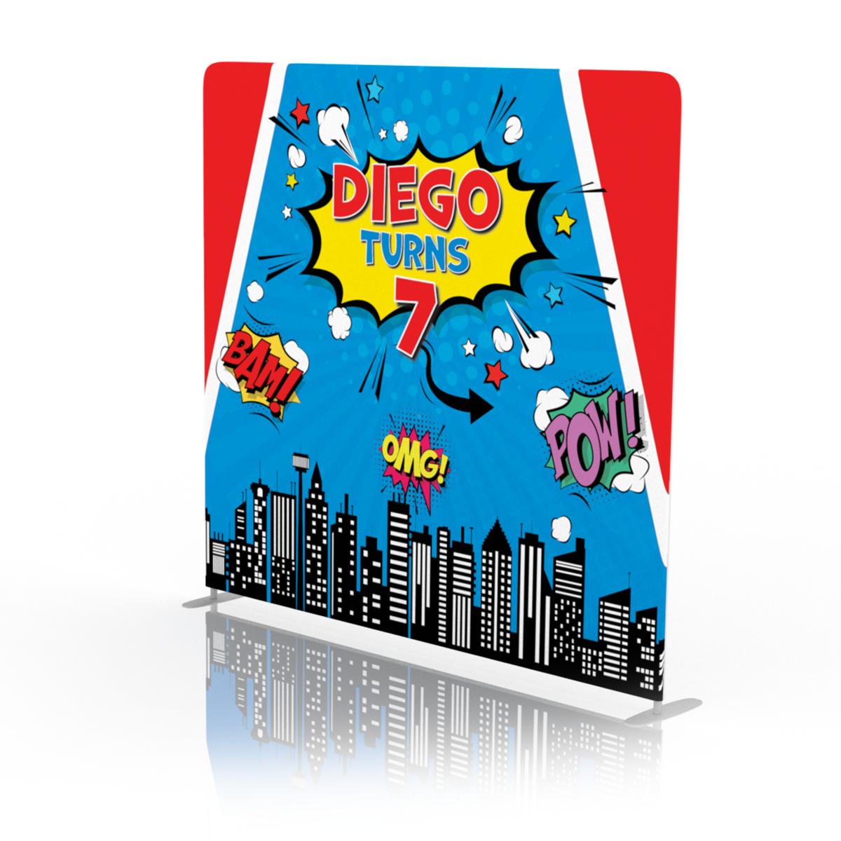 Unleash the hero within with a bold, comic-inspired backdrop. Easy to install, it sets the stage for an adventurous birthday filled with action and fun.