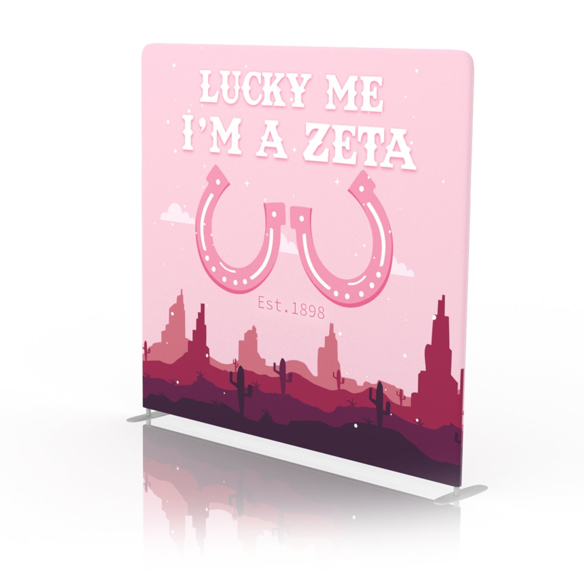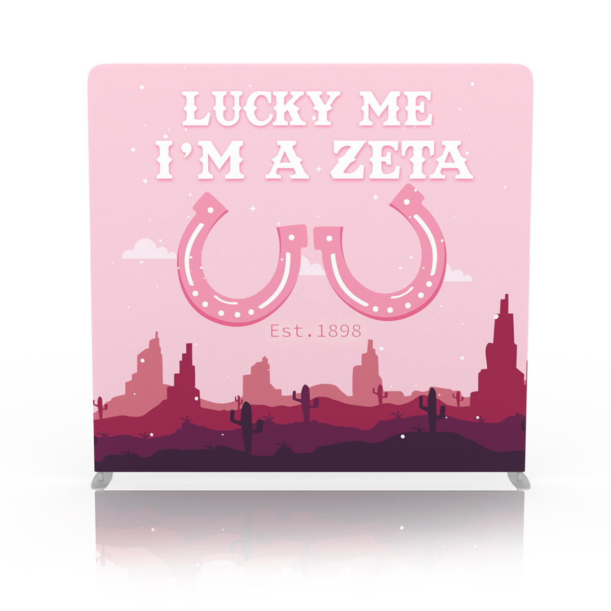 Lucky me, I’m a Zeta! Go the extra mile during rush this year and create your own personalized ‘I’m a Zeta’ backdrop banner. Don't forget to add a fun balloon arch or flower garland to ensure you are grabbing all the attention your sorority deserves. This customizable sorority backdrop is ideal for your next sorority event or college party photo background!