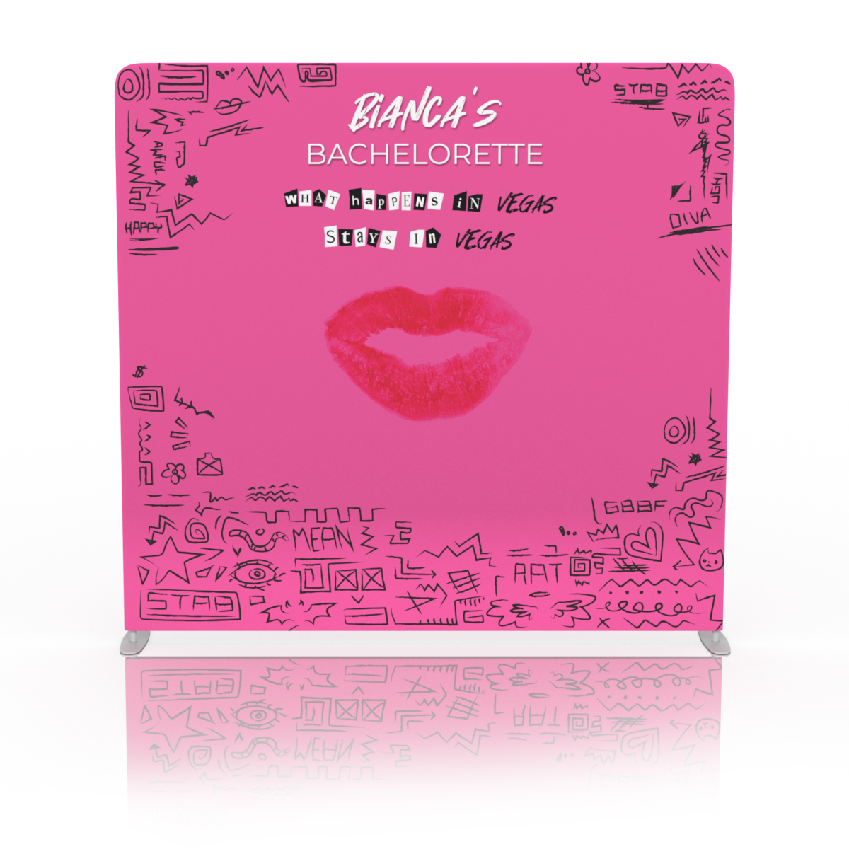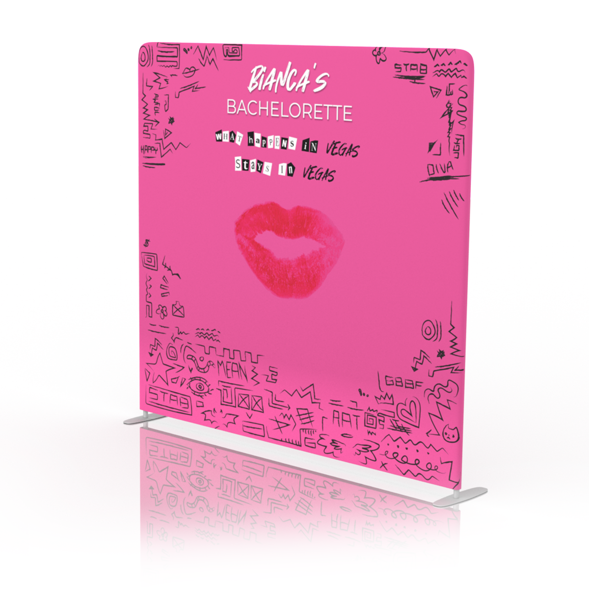 After the bachelorette party, why not use your backdrop frame for future celebrations with a quick change of high-resolution fabric graphics. If you already have one of our frames simply choose ‘print only’* to remove the hardware.