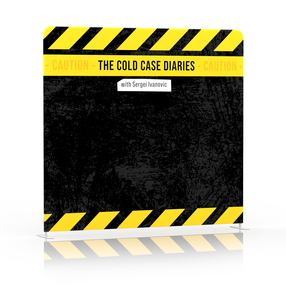 Step into the world of unsolved mysteries with the ‘Cold Case Diaries’ backdrop. Perfect for true crime podcasts and investigative series, this design combines sleek, professional elements with an engaging atmosphere, setting the stage for captivating discussions and in-depth storytelling.